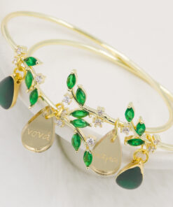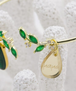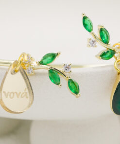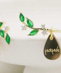 Μπρασελέ με ζιργκόν σε πράσινη απόχρωση και σε σχήμα φύλλων διατίθεται σε μαμά, νονά, γιαγιά, θεία και αδερφή. Οι φωτογραφίες έχουν υποστεί επεξεργασία και τα χρώματα ίσως να διαφέρουν λίγο στην πραγματικότητα. Η Τιμή αφορά συσκευασία 2 τεμαχίων.
