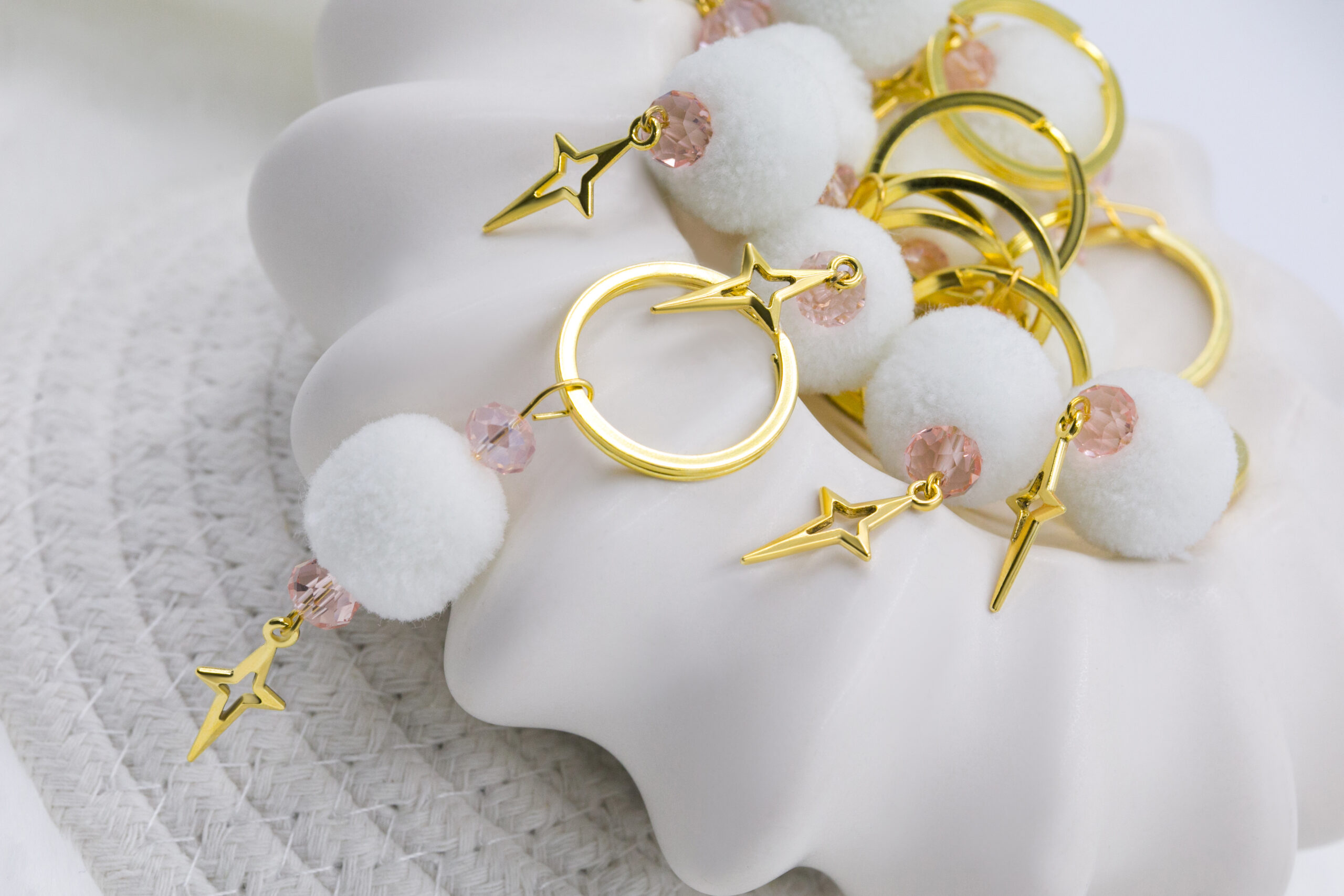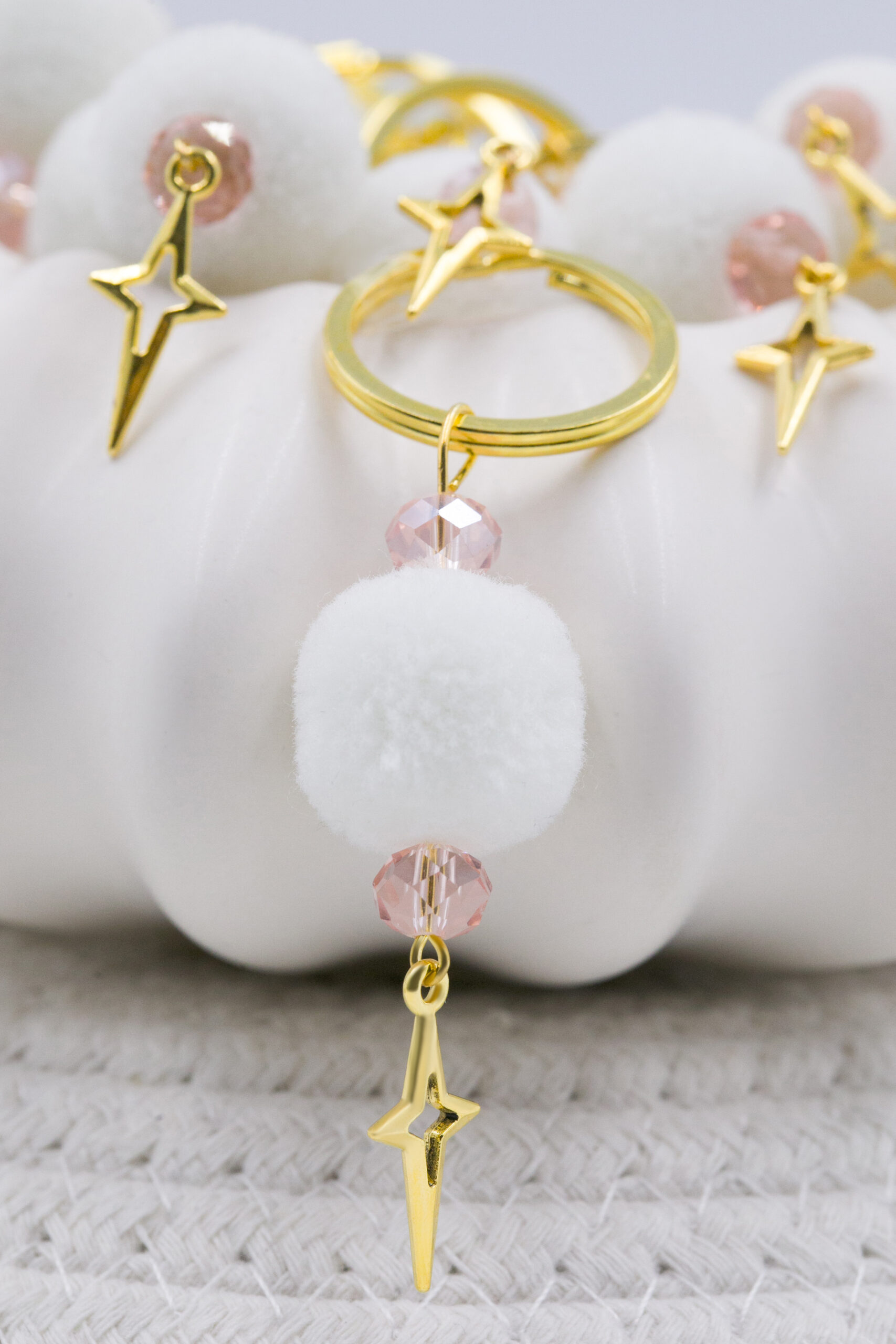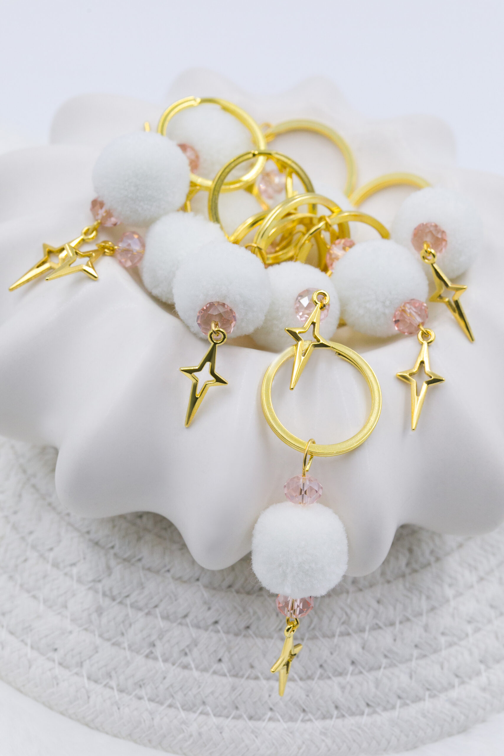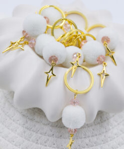 Μαρτυρικό μπρελόκ με λευκό πον πον και κρυσταλλάκια ροζ, επιχρυσωμένος σταυρός. Οι φωτογραφίες έχουν υποστεί επεξεργασία και τα χρώματα ίσως να διαφέρουν λίγο στην πραγματικότητα. Η τιμή αφορά συσκευασία 50 τεμαχίων.