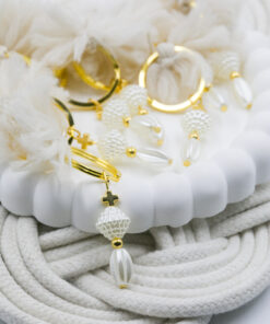 Μαρτυρικό μπρελόκ επιχρυσωμένος σταυρός, πέρλες και φιόγκος εκρού. Οι φωτογραφίες έχουν υποστεί επεξεργασία και τα χρώματα ίσως να διαφέρουν λίγο στην πραγματικότητα. Η τιμή αφορά συσκευασία 50 τεμαχίων.