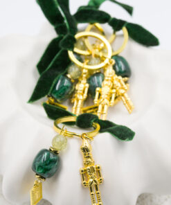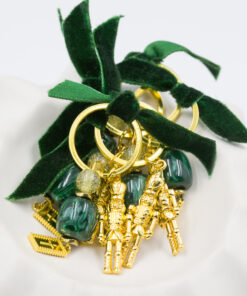 Μαρτυρικό μπρελόκ, πράσινος φιόγκος βελούδο, καρυοθραύστης σε χρυσή απόχρωση, πράσινη και χρυσή χάντρα με γκλίτερ χρυσός σταυρός. Οι φωτογραφίες έχουν υποστεί επεξεργασία και τα χρώματα ίσως να διαφέρουν λίγο στην πραγματικότητα. Η τιμή αφορά συσκευασία 50 τεμαχίων.