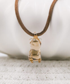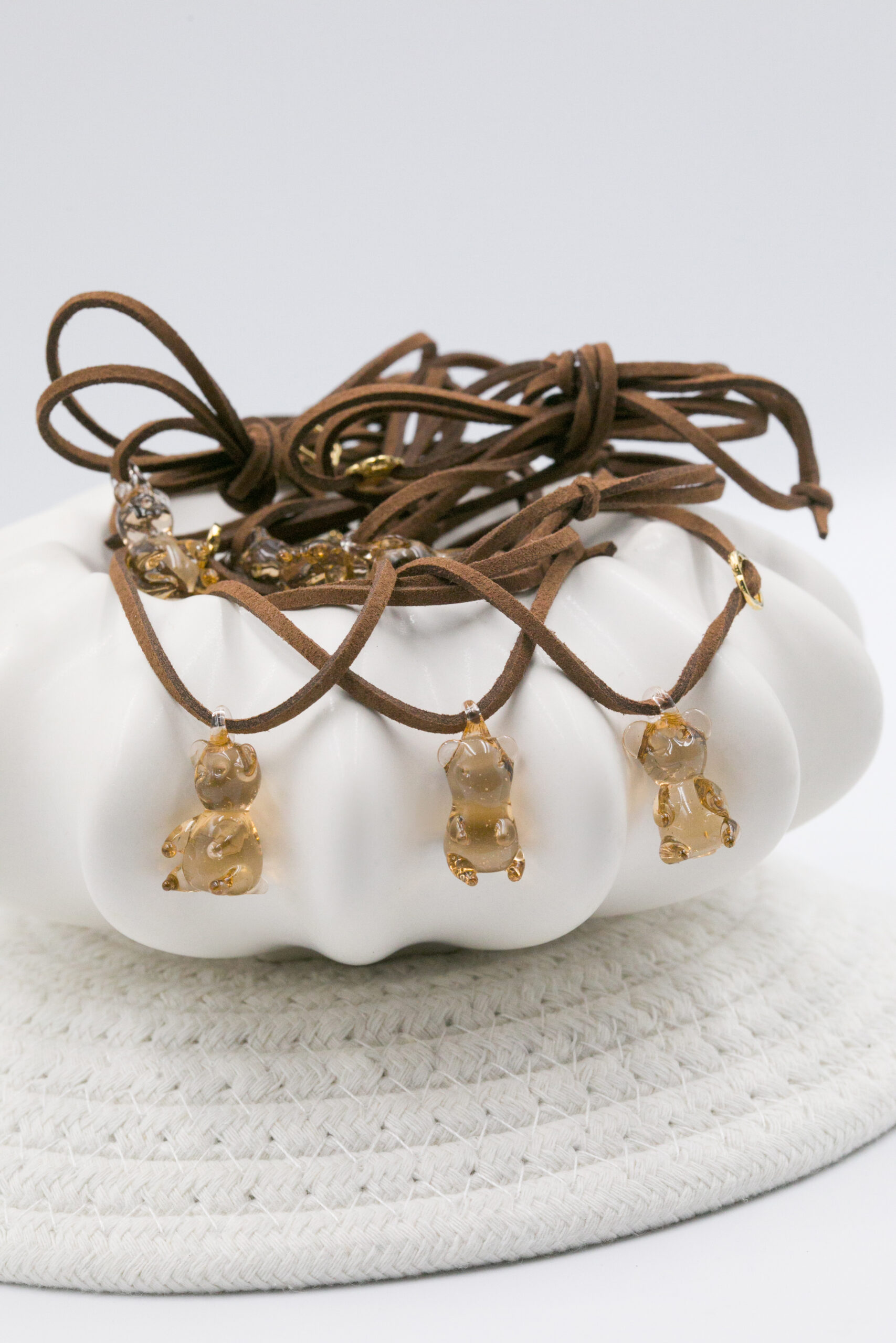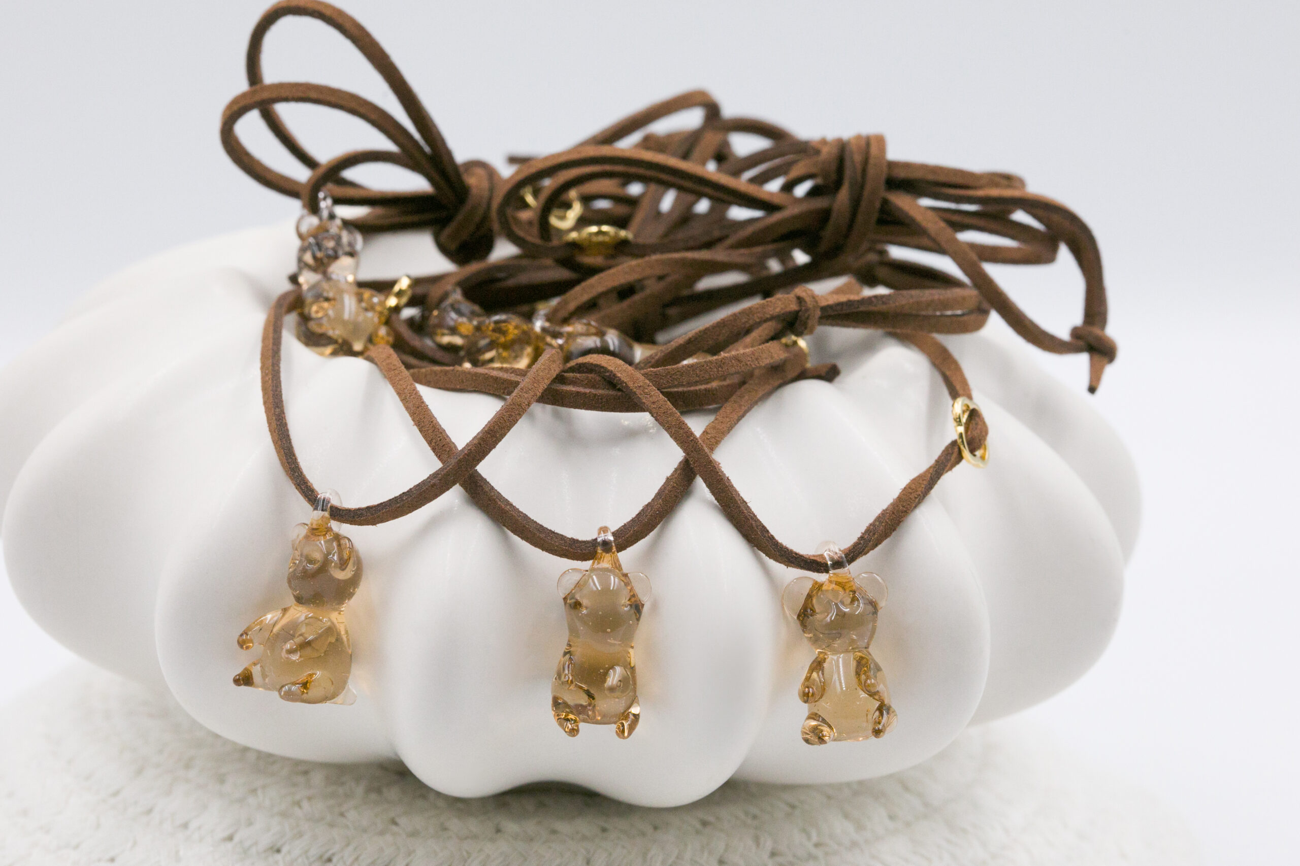 Μαρτυρικό κολιέ, καφέ γυάλινο αρκουδάκι επιχρυσωμένος σταυρός. Οι φωτογραφίες έχουν υποστεί επεξεργασία και τα χρώματα ίσως να διαφέρουν λίγο στην πραγματικότητα. Η τιμή αφορά συσκευασία 50 τεμαχίων.