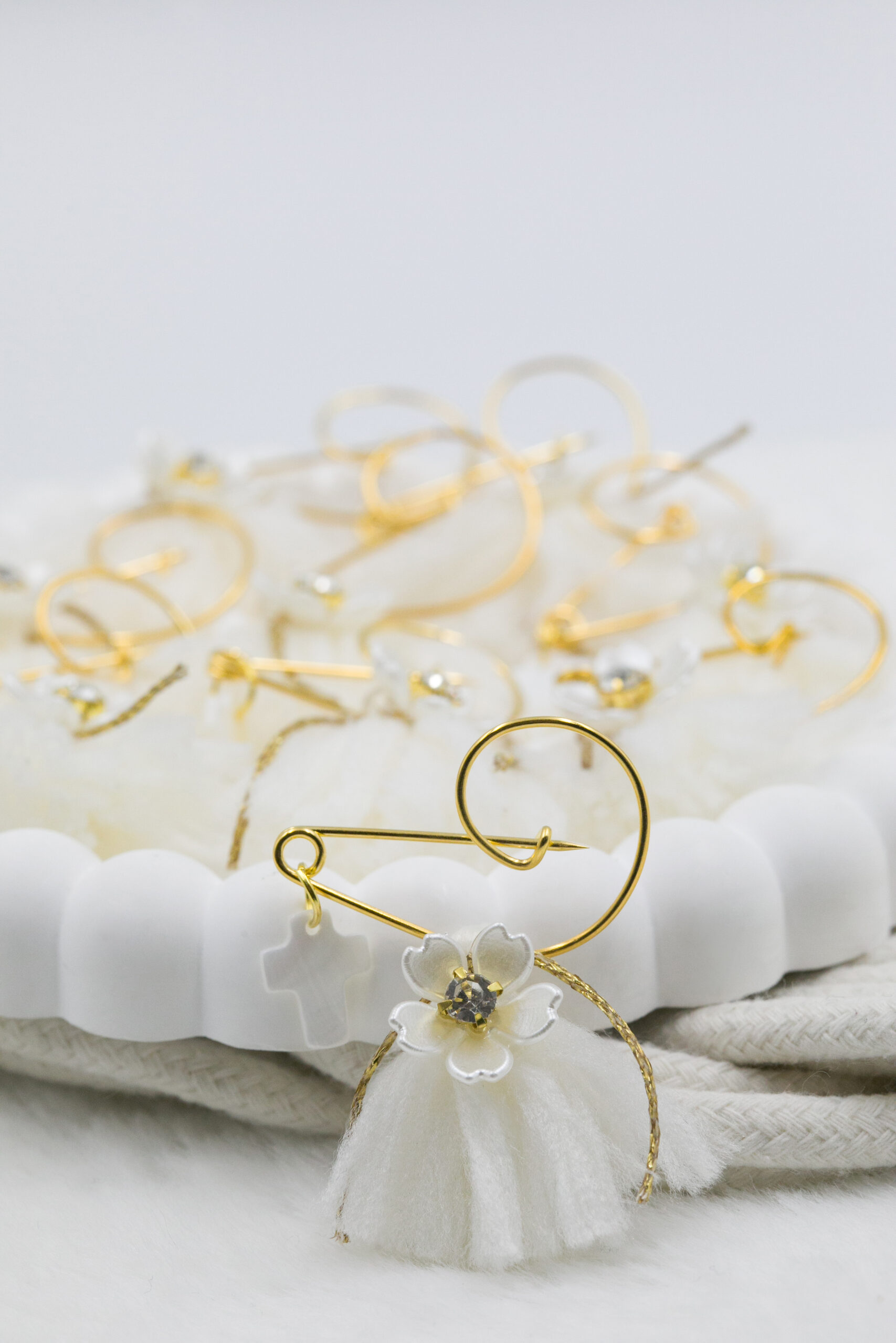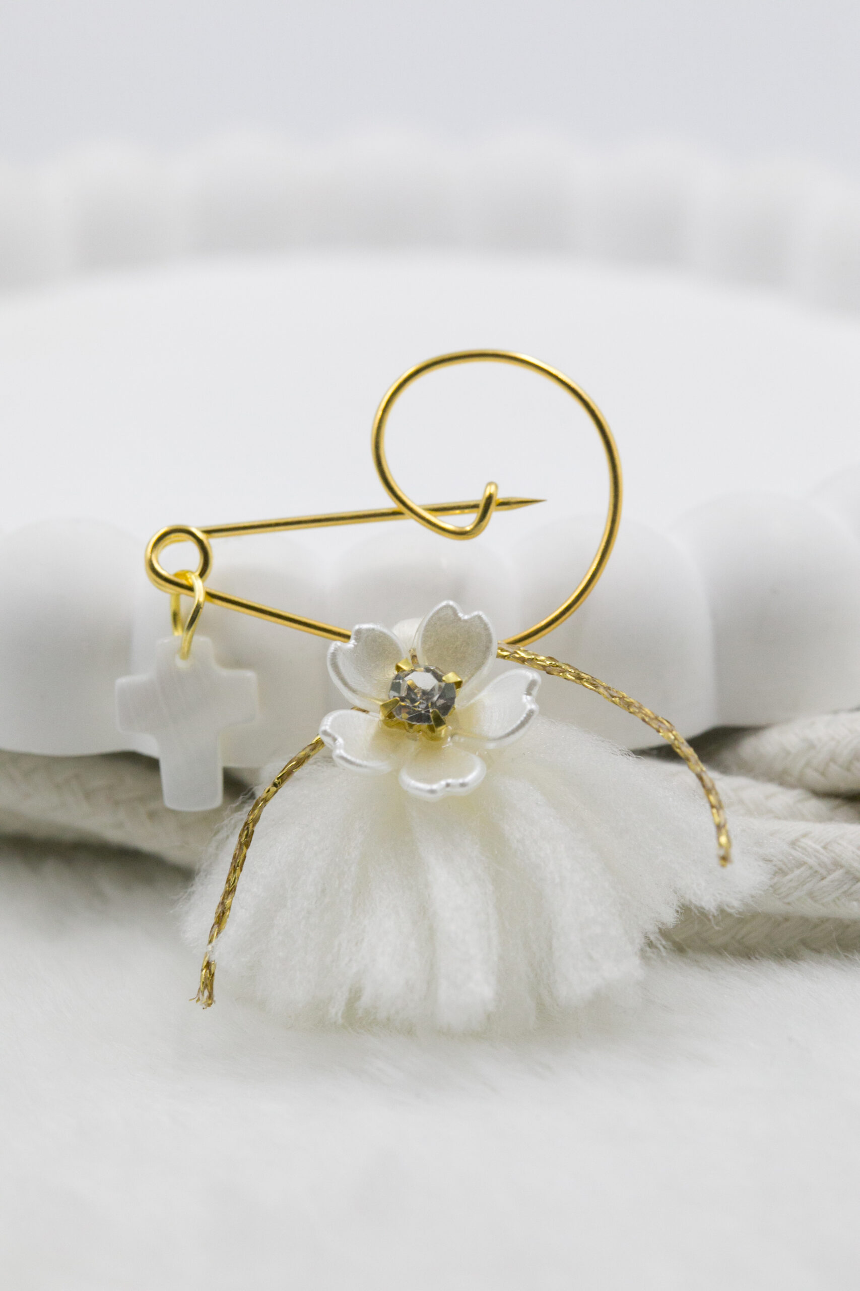 Μαρτυρικό πέτου με λευκή φούντα και σταυρό φίλντισι λευκό. Οι φωτογραφίες έχουν υποστεί επεξεργασία και τα χρώματα ίσως να διαφέρουν λίγο στην πραγματικότητα. Η τιμή αφορά συσκευασία 50 τεμαχίων.