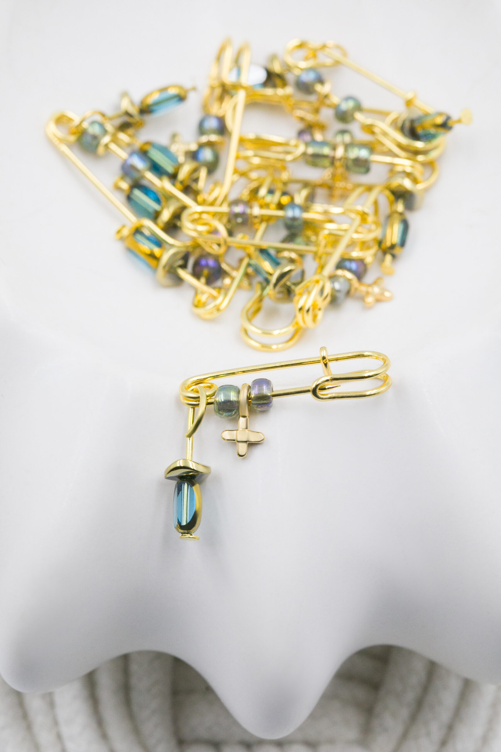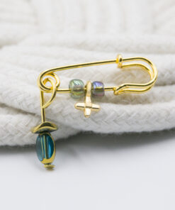 Μαρτυρικό καρφίτσα, χάντρα διαφανή σε διάφορα χρώματα, αιματίτης και επιχρυσωμένος σταυρός. Οι φωτογραφίες έχουν υποστεί επεξεργασία και τα χρώματα ίσως να διαφέρουν λίγο στην πραγματικότητα. Η τιμή αφορά συσκευασία 50 τεμαχίων.