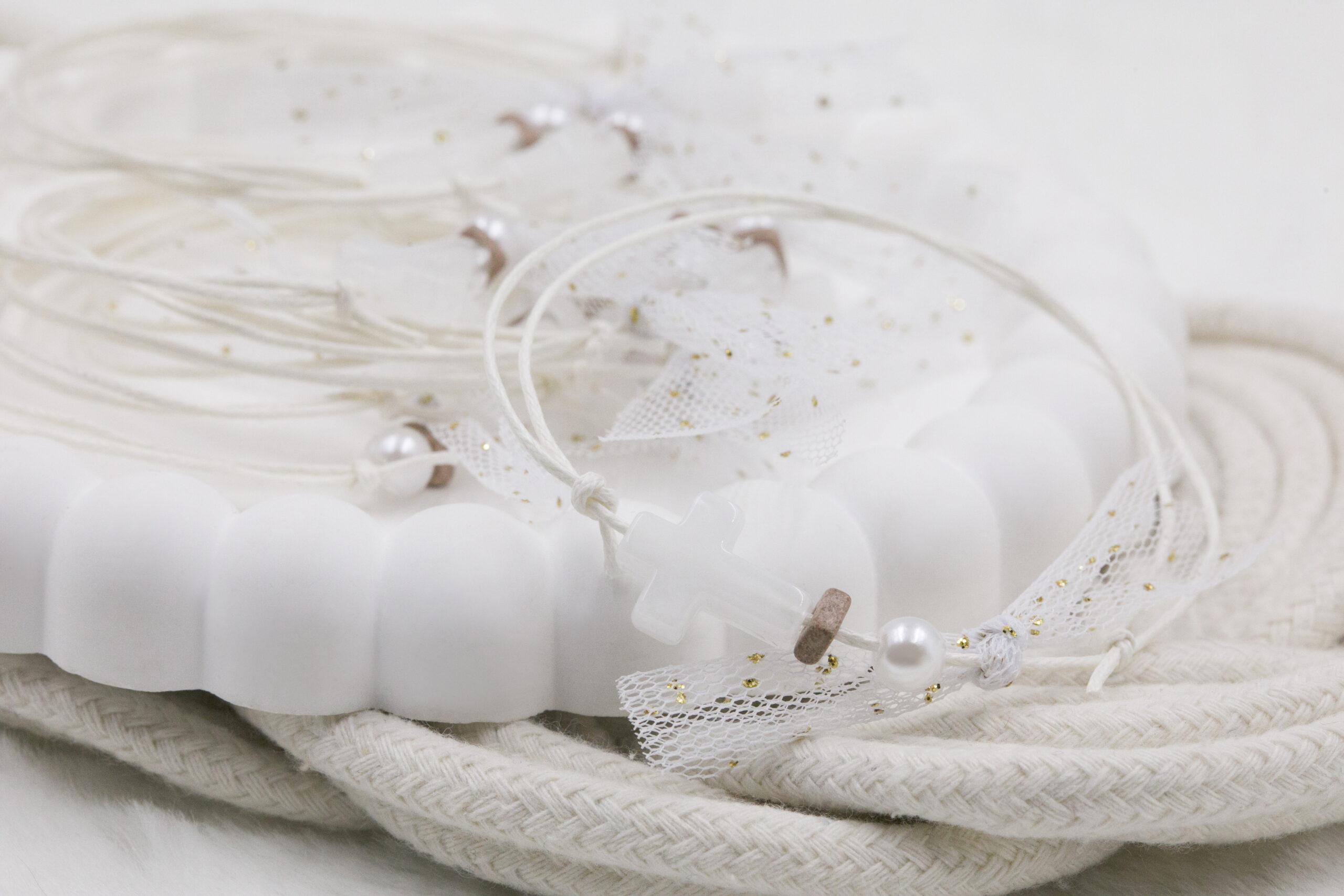 Μαρτυρικό βραχιόλι με λευκό κορδόνι, διάφανο ακρυλικό σταυρό. Οι φωτογραφίες έχουν υποστεί επεξεργασία και τα χρώματα ίσως να διαφέρουν λίγο στην πραγματικότητα. Η τιμή αφορά συσκευασία 50 τεμαχίων.