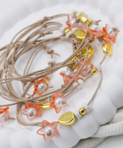 Μαρτυρικό βραχιόλι με επιχρυσωμένο σταυρό, λευκές κεραμικές χάντρες και στο τελείωμα λουλούδι, κορδόνι δέρμα. Οι φωτογραφίες έχουν υποστεί επεξεργασία και τα χρώματα ίσως να διαφέρουν λίγο στην πραγματικότητα. Η τιμή αφορά συσκευασία 50 τεμαχίων.