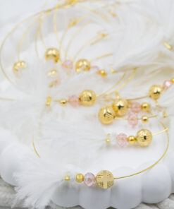 Μαρτυρικό βραχιόλι σε σύρμα memories φτερό λευκό, κρύσταλλο ροζ και επιχρυσωμένος σταυρός. Οι φωτογραφίες έχουν υποστεί επεξεργασία και τα χρώματα ίσως να διαφέρουν λίγο στην πραγματικότητα. Η τιμή αφορά συσκευασία 50 τεμαχίων.