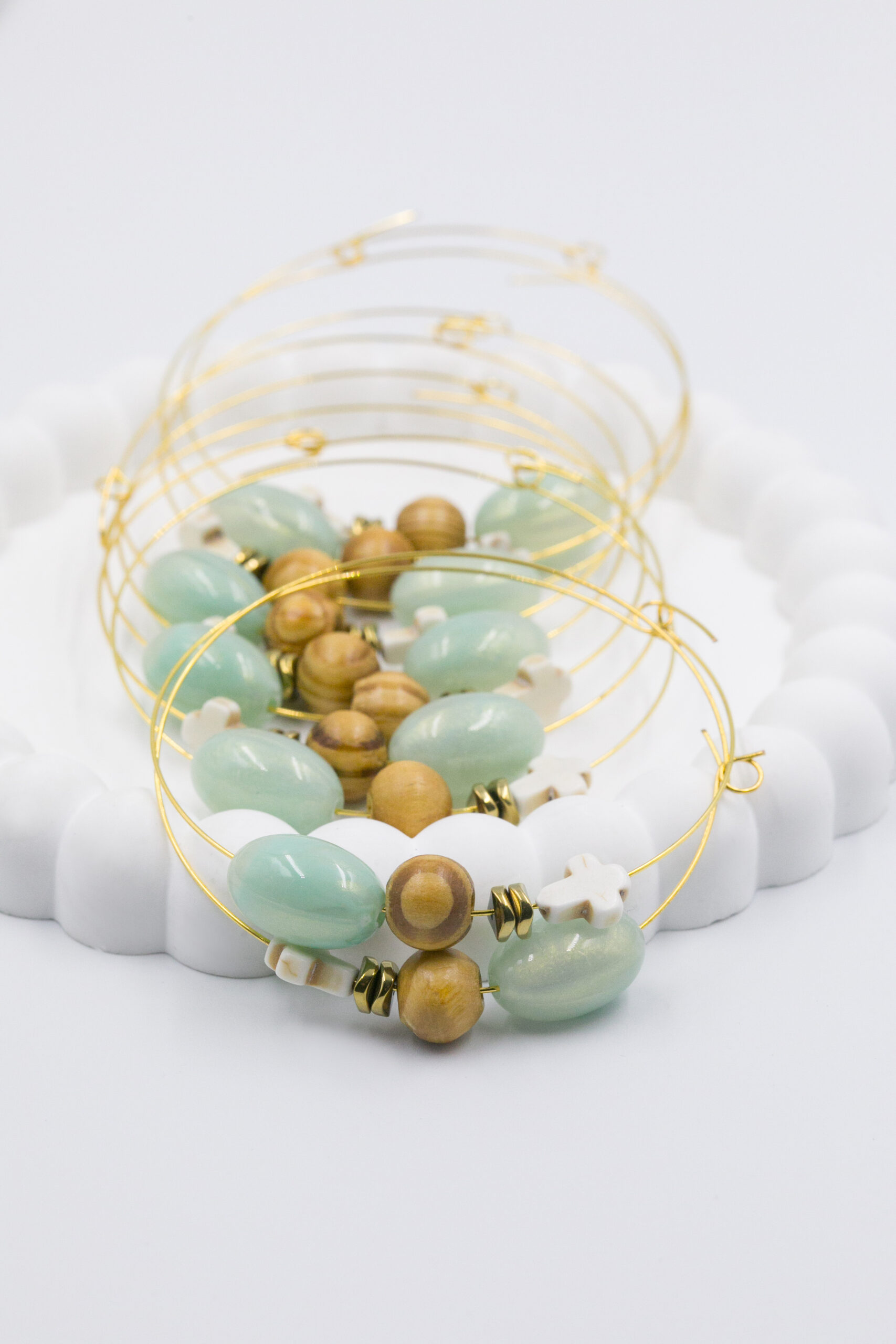Μαρτυρικό βραχιόλι σύρμα memories με σταυρό χαολίτη, ξύλινη και ακρυλική με νερά χάντρα. Οι φωτογραφίες έχουν υποστεί επεξεργασία και τα χρώματα ίσως να διαφέρουν λίγο στην πραγματικότητα. Η τιμή αφορά συσκευασία 50 τεμαχίων.