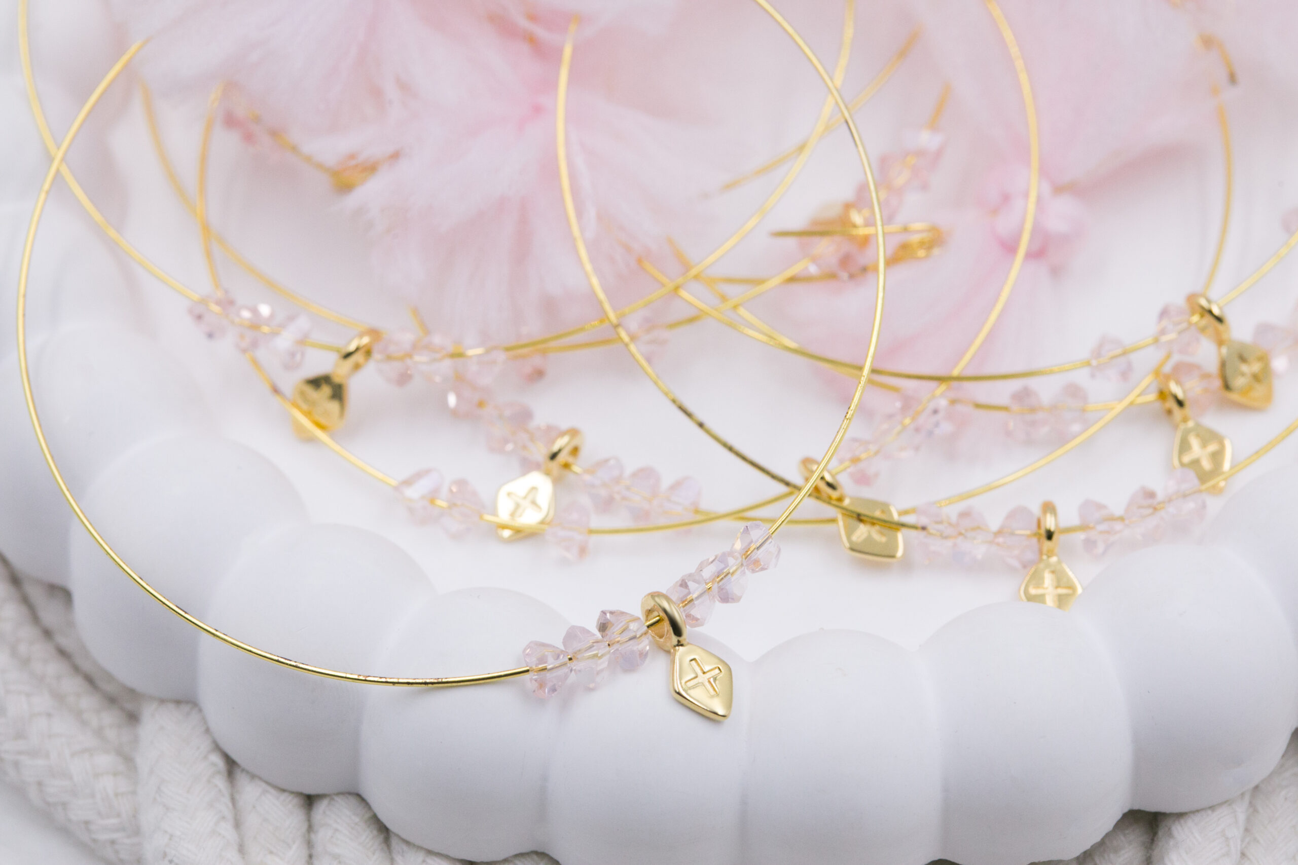 Μαρτυρικό βραχιόλι memories, ροζ κρύσταλλα, επιχρυσωμένος σταυρός σε σχήμα ρόμβο και ροζ φιόγκο. Οι φωτογραφίες έχουν υποστεί επεξεργασία και τα χρώματα ίσως να διαφέρουν λίγο στην πραγματικότητα. Η τιμή αφορά συσκευασία 50 τεμαχίων.