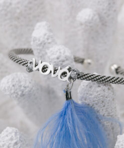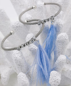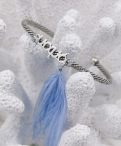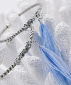Βραχιόλι ασημί χρώμα, με φτερό γαλάζιο, διατίθεται μαμά, νονά και γιαγιά. Οι φωτογραφίες έχουν υποστεί επεξεργασία και τα χρώματα ίσως να διαφέρουν λίγο στην πραγματικότητα. Η Τιμή αφορά συσκευασία 2 τεμαχίων.