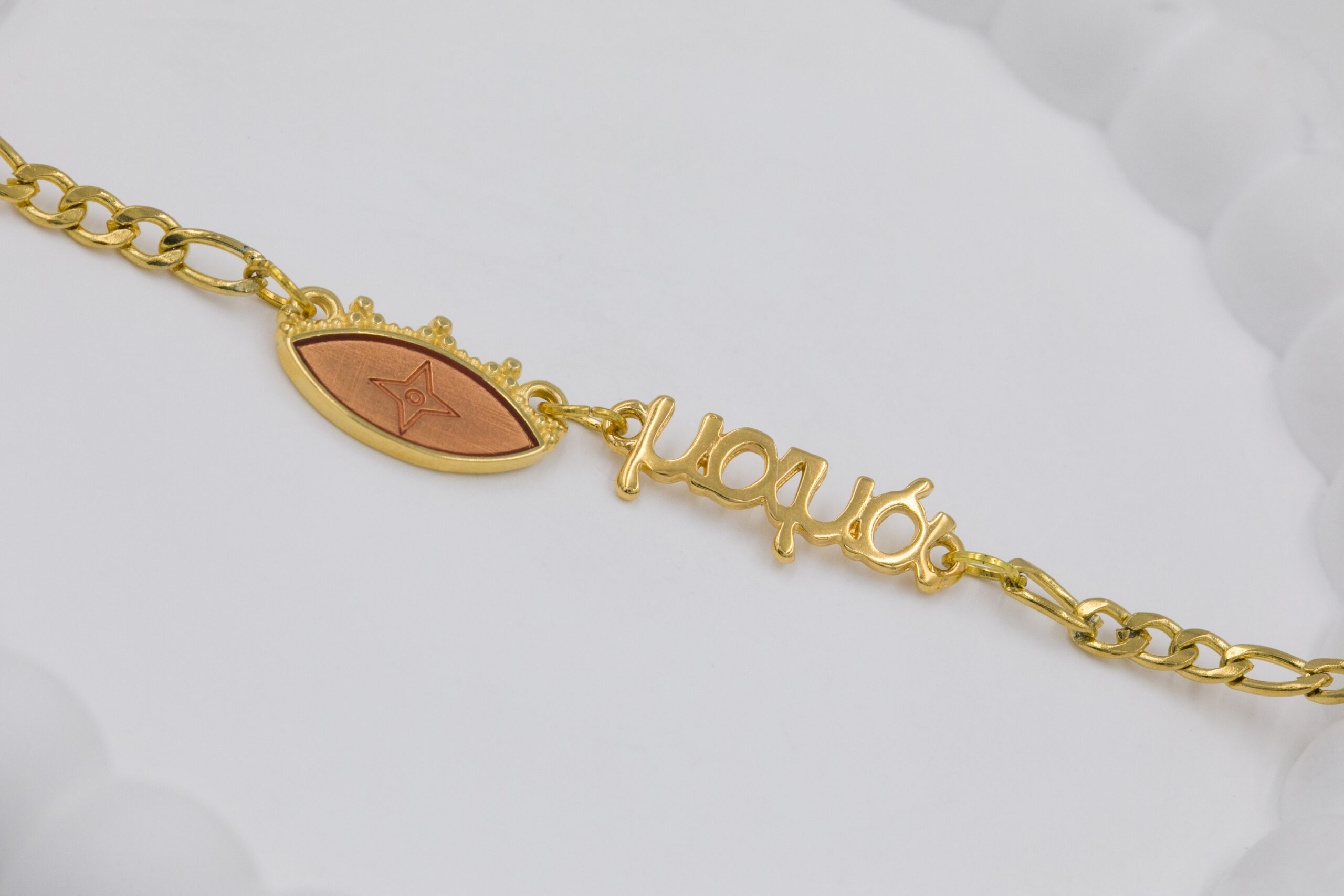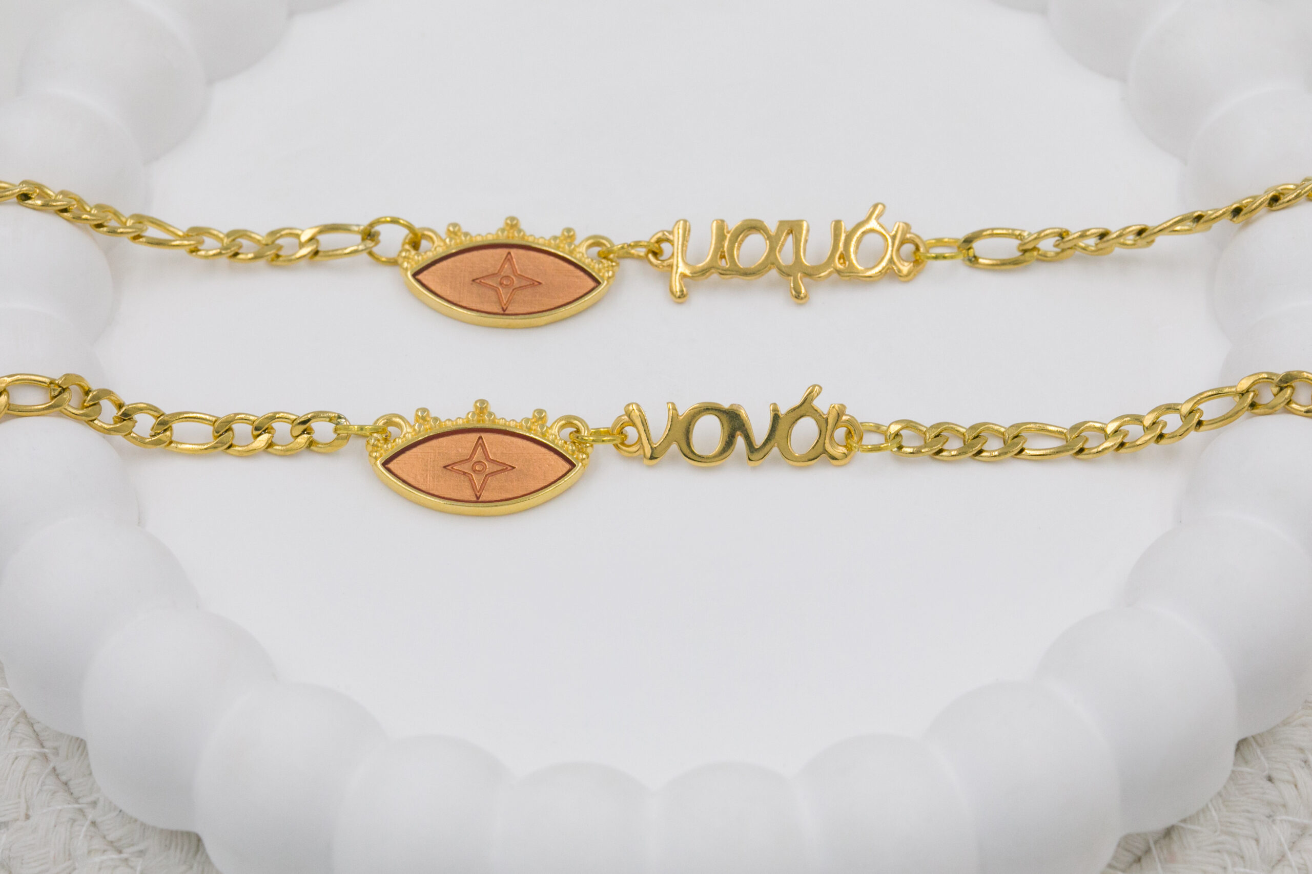 Βραχιόλι αλυσίδα με μοτιφ μάτι σε χρώμα και επιχρυσωμένο μαμά, νονά, γιαγιά. Οι φωτογραφίες έχουν υποστεί επεξεργασία και τα χρώματα ίσως να διαφέρουν λίγο στην πραγματικότητα. Η Τιμή αφορά συσκευασία 2 τεμαχίων.