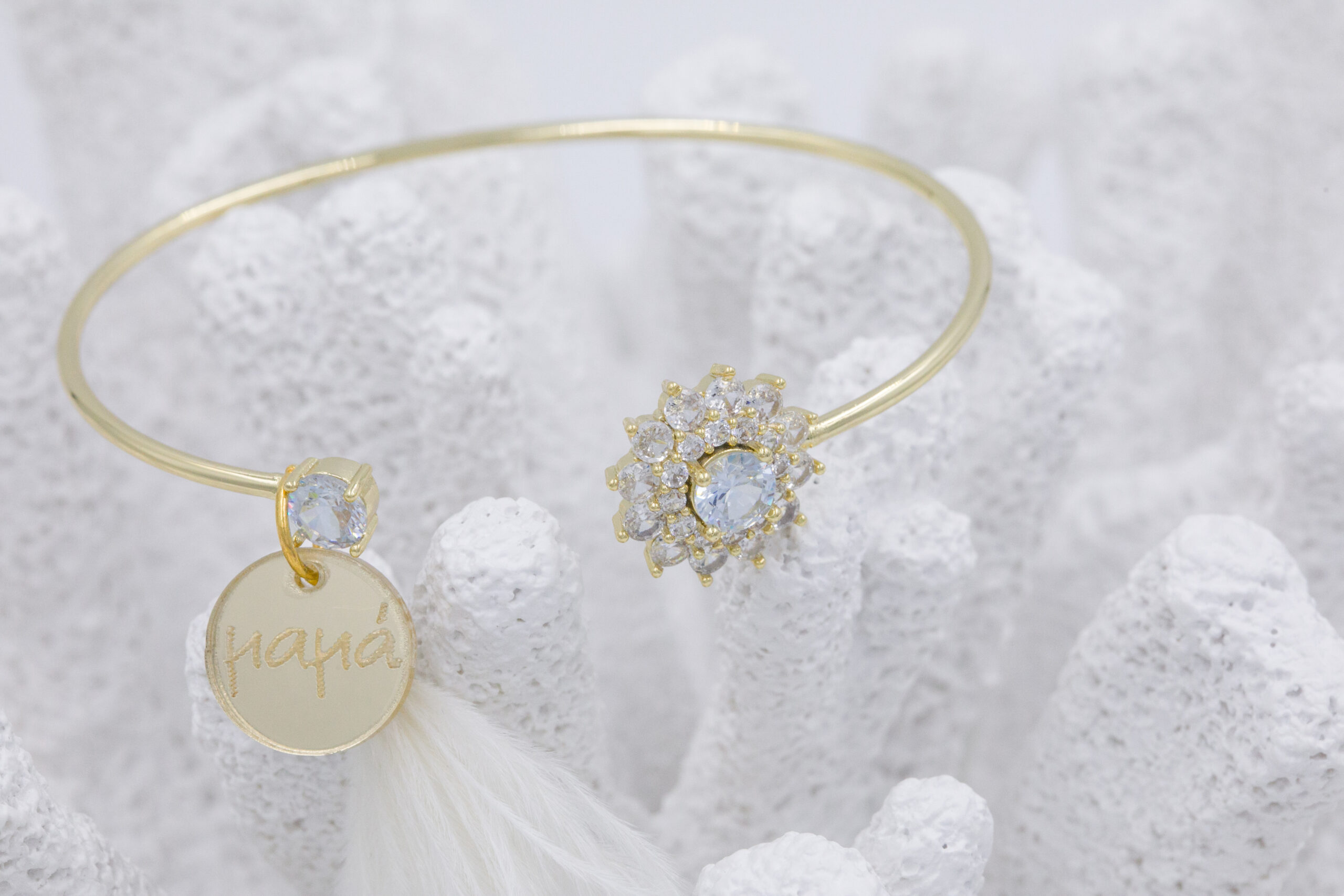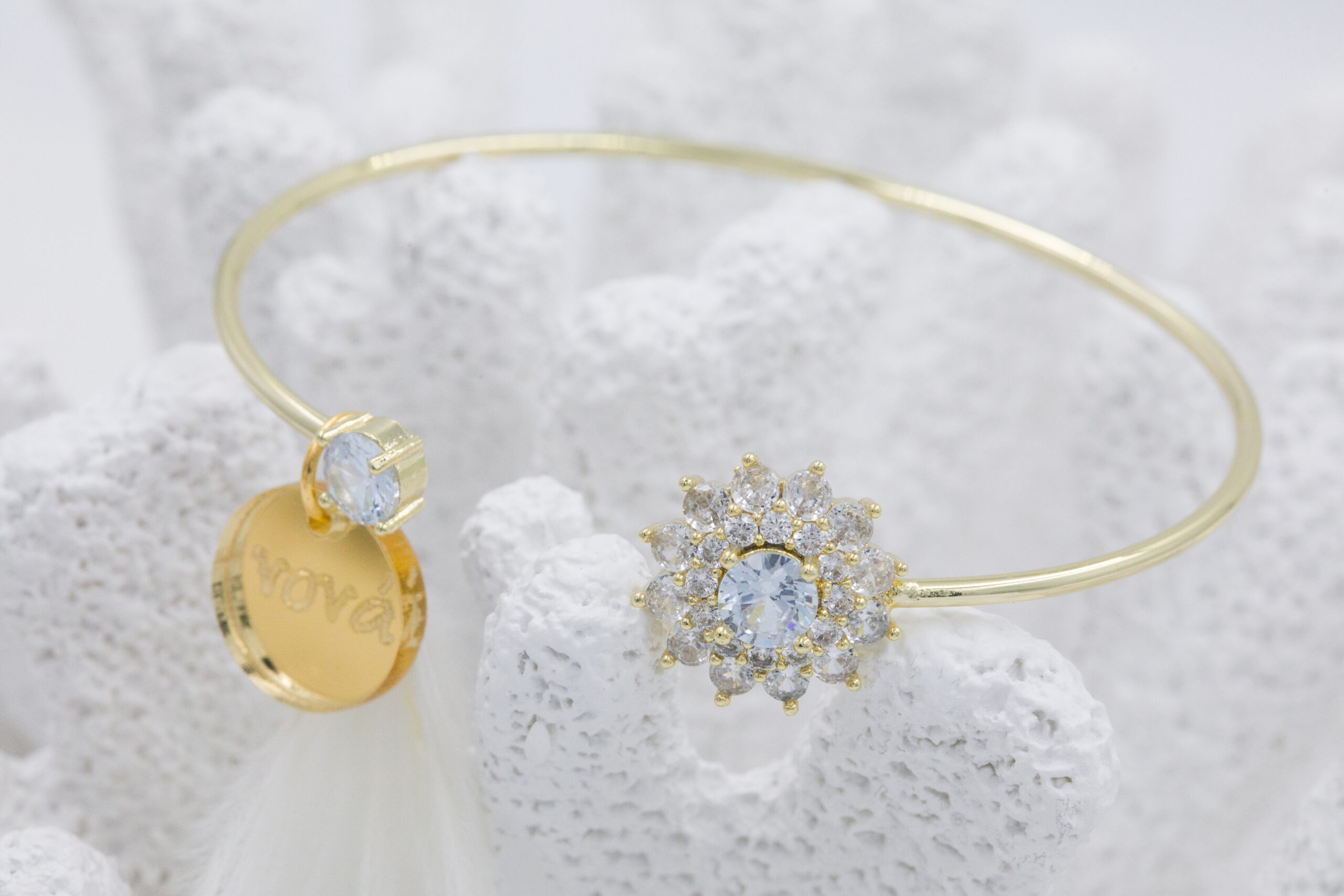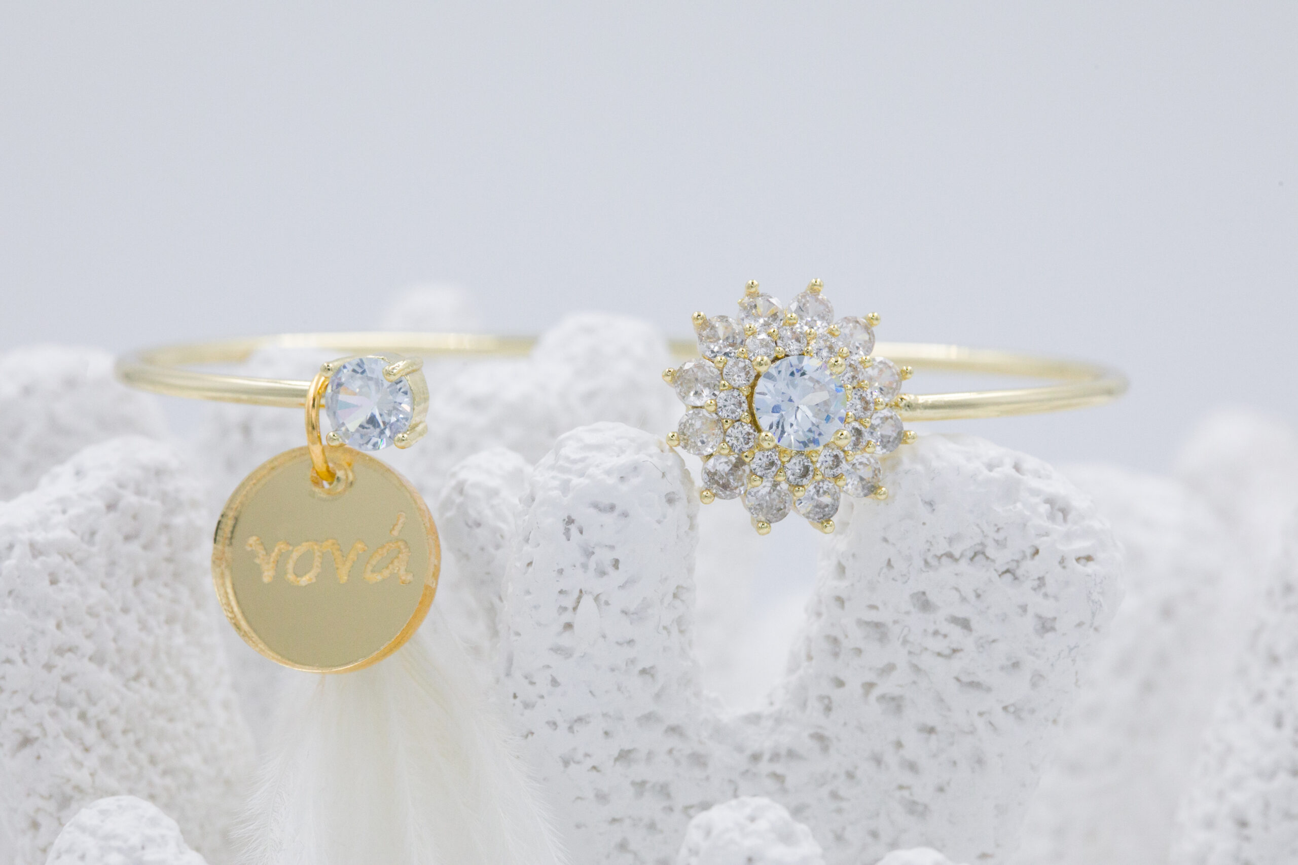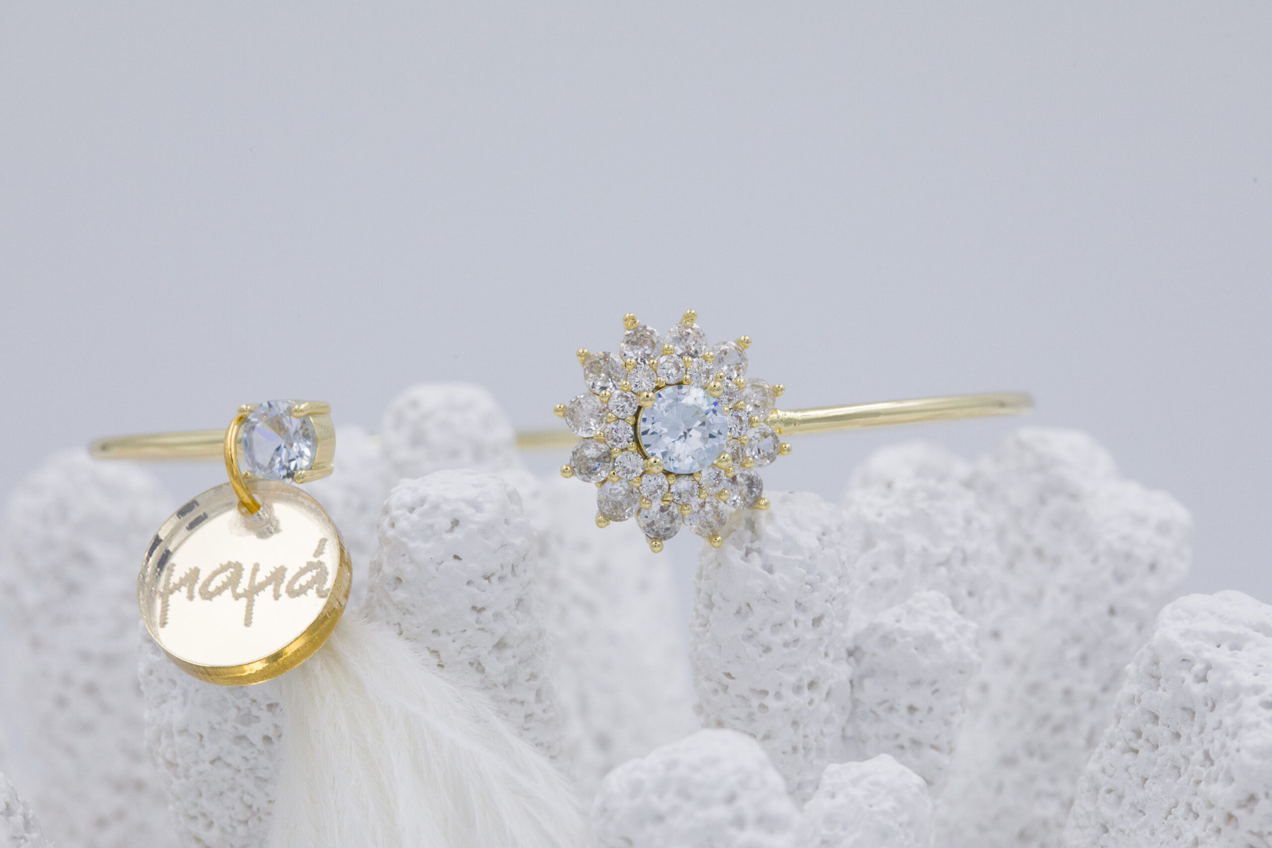 Χειροπέδα, με ζιργκόν σε σχέδιο λουλούδι, φτερό λευκό, για την μαμά, νονά, γιαγιά, θεία, αδερφή. Οι φωτογραφίες έχουν υποστεί επεξεργασία και τα χρώματα ίσως να διαφέρουν λίγο στην πραγματικότητα. Η Τιμή αφορά συσκευασία 2 τεμαχίων.