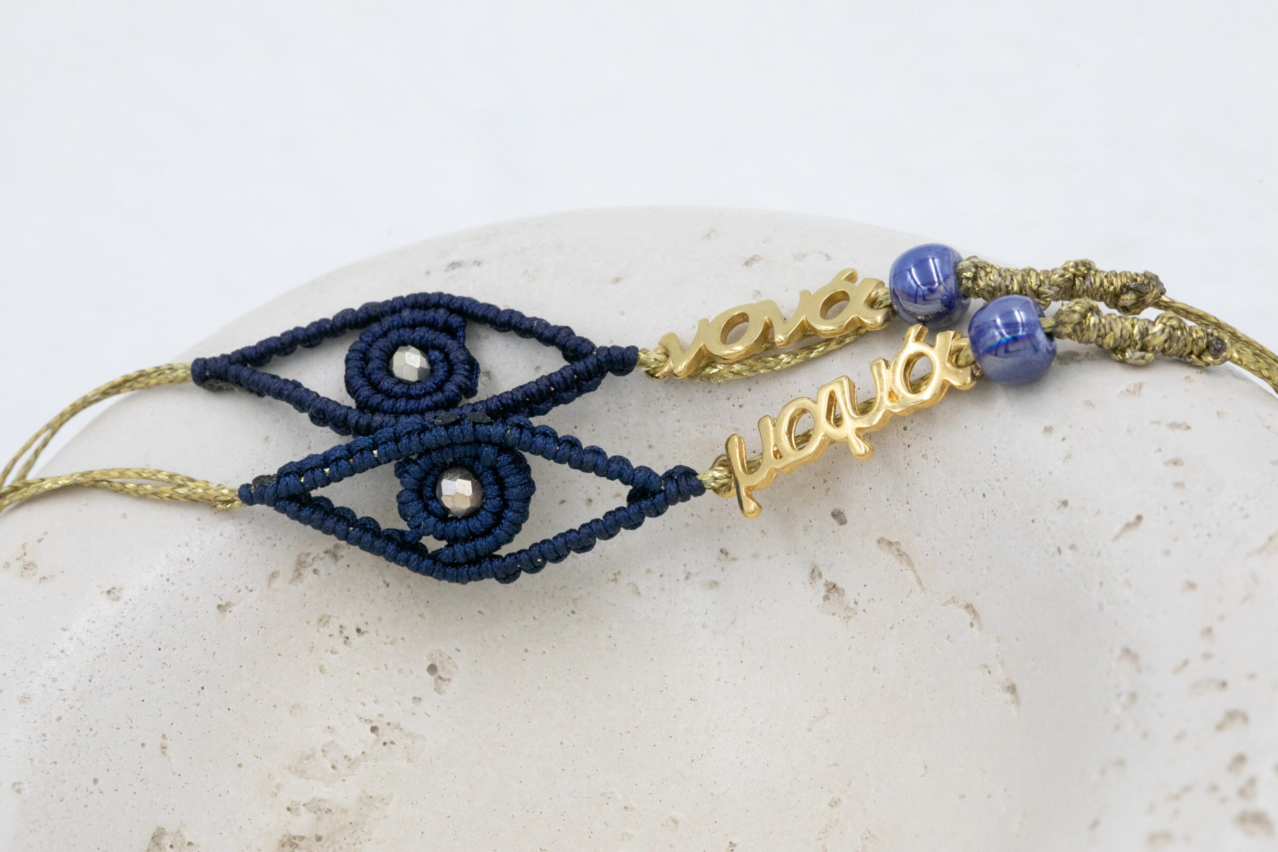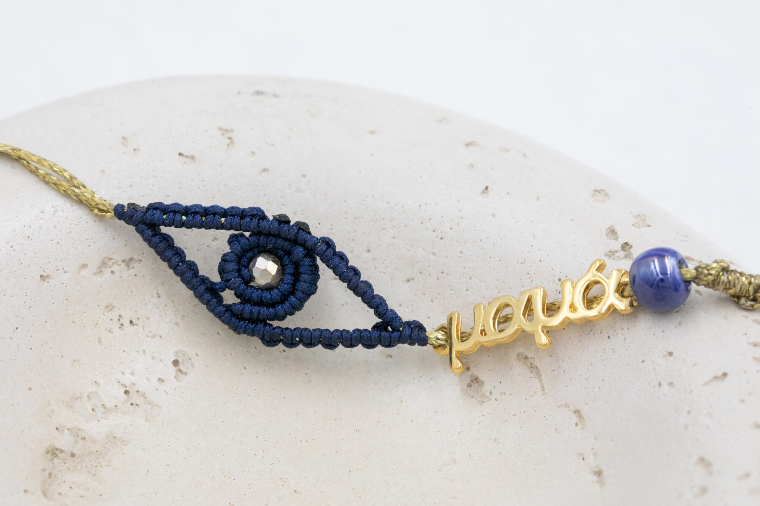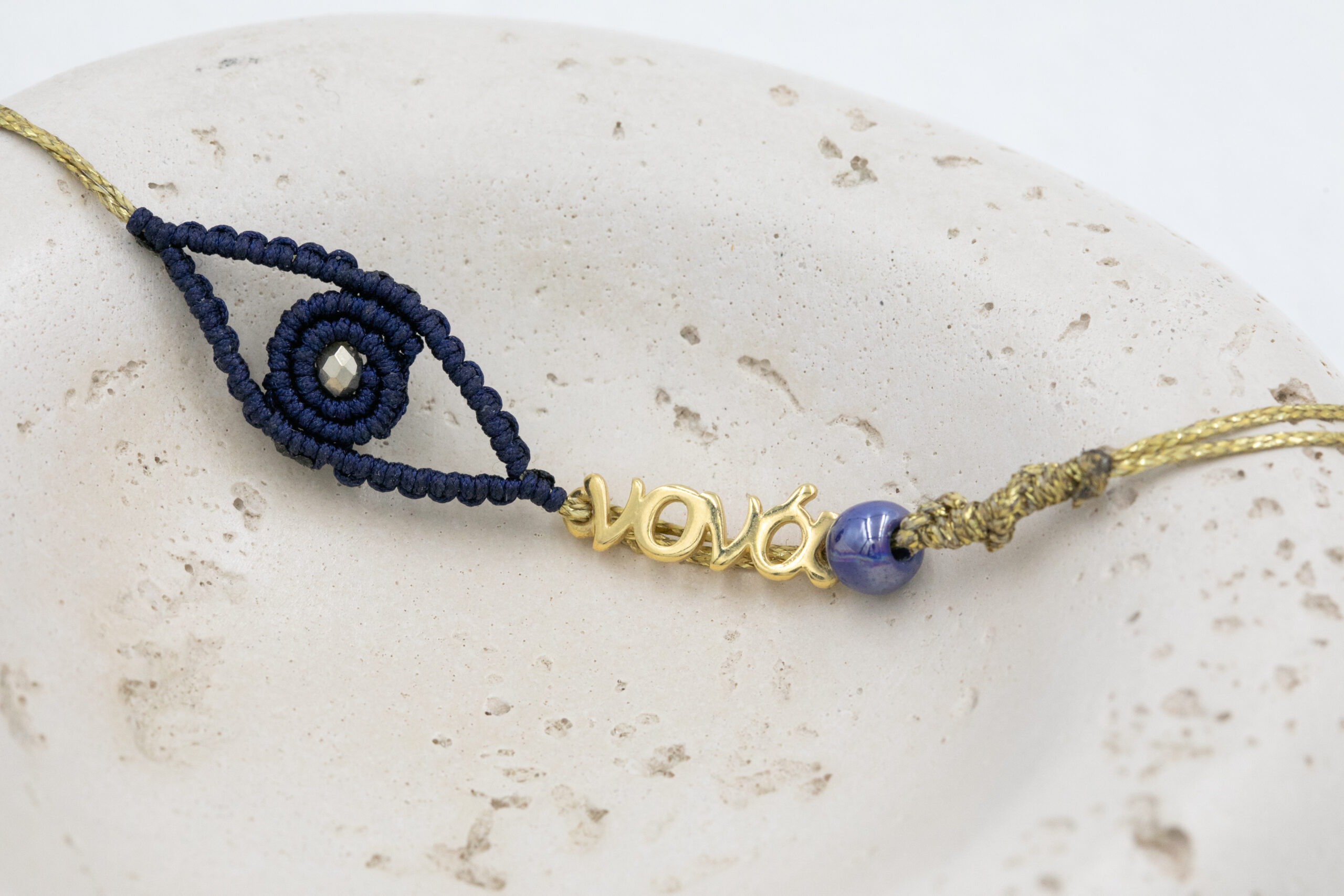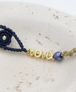 Βραχιόλι μακραμέ σε μπλε μάτι διατίθεται σε μαμά νονά και γιαγιά. Οι φωτογραφίες έχουν υποστεί επεξεργασία και τα χρώματα ίσως να διαφέρουν λίγο στην πραγματικότητα. Η Τιμή αφορά συσκευασία 2 τεμαχίων.