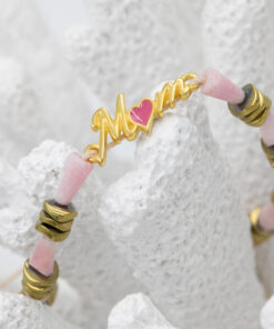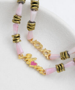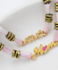 Βραχιόλι με ροζ κρύσταλλα, αιματίτη σε σχήμα ροδέλα και επιχρυσωμένο μαμά, νονά. Οι φωτογραφίες έχουν υποστεί επεξεργασία και τα χρώματα ίσως να διαφέρουν λίγο στην πραγματικότητα. Η Τιμή αφορά συσκευασία 2 τεμαχίων.