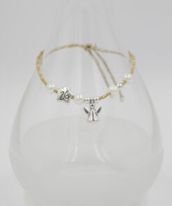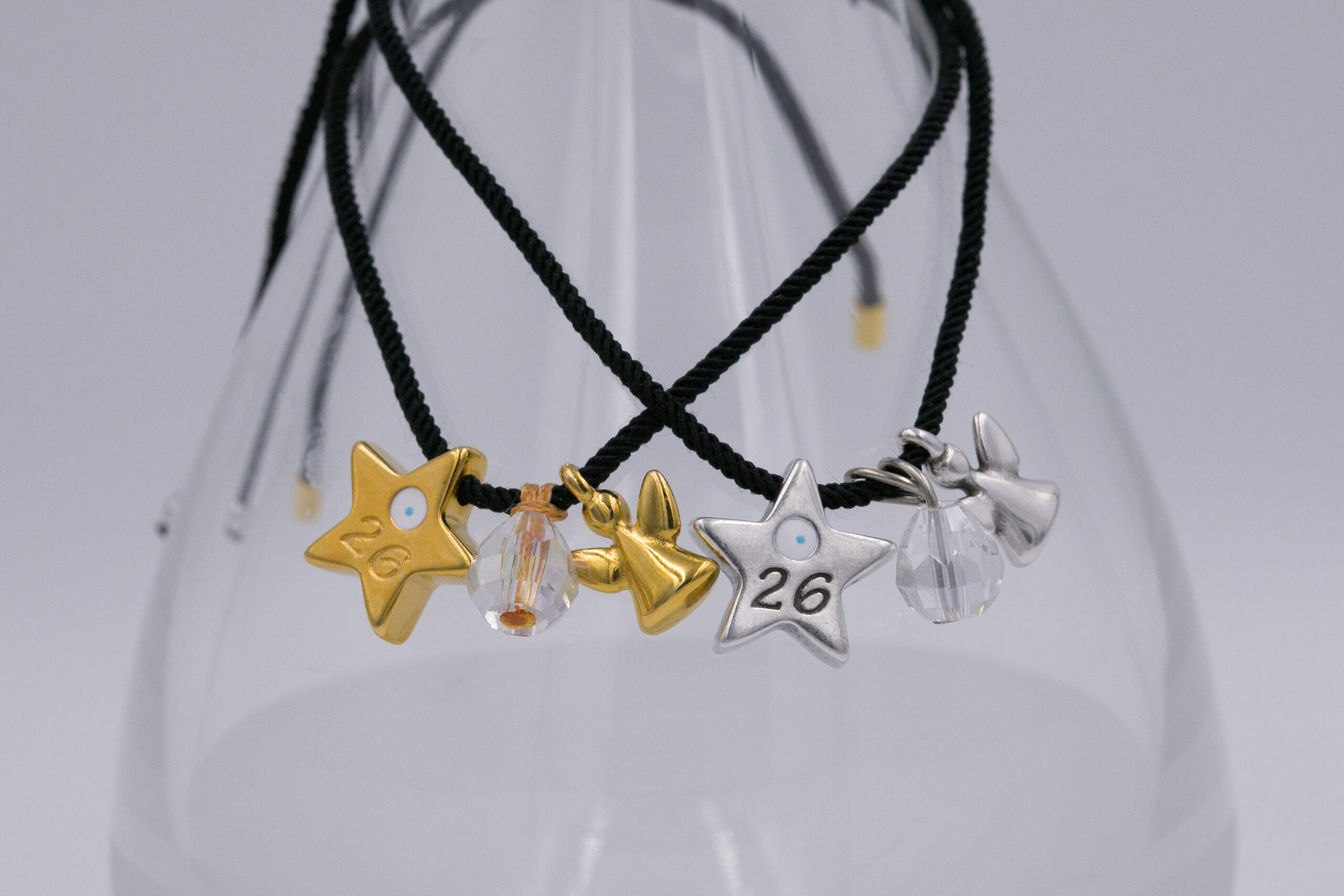 Βραχιόλι, κορδόνι μαύρο με μοτιφ αστέρι 26 σε δυο αποχρώσεις χρυσό και ασημί με αγγελάκι.
